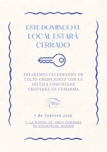 Somos una comunidad unida por la fe, dedicada a compartir el amor de Cristo. Únase a nosotros para los servicios dominicales, estudios bíblicos y actividades comunitarias. ¡Damos la bienvenida a todos!